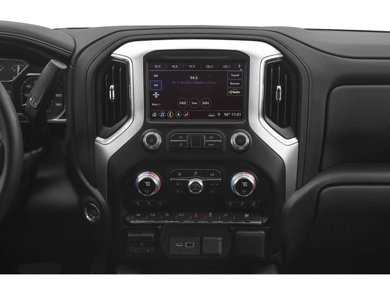 - Audio system, Premium GMC Infotainment System with 8" diagonal color touch-screen, includes multi-touch display, AM/FM stereo Bluetooth® streaming audio for music and most phones; featuring Android Auto and Apple CarPlay capability for compatible phones, advanced voice recognition, in-vehicle apps, personalized profiles for infotainment and vehicle settings